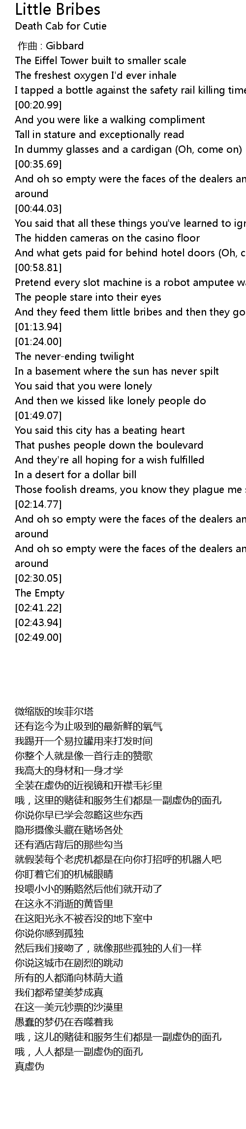 | [00:00.00] | 作曲 : Gibbard |