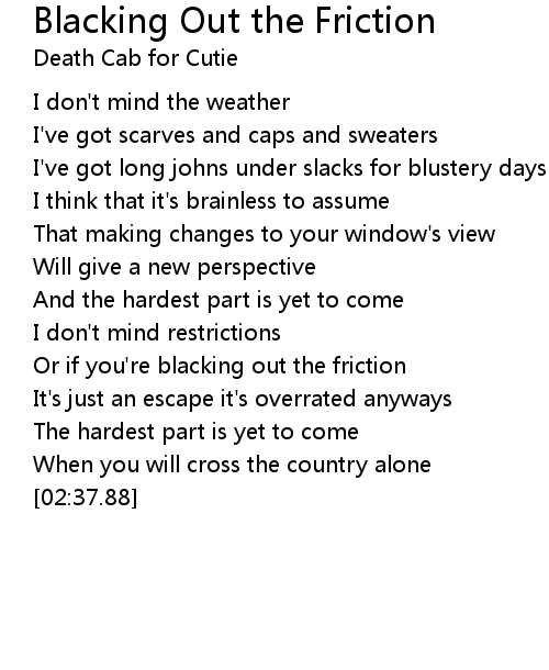 Or if you're blacking out the friction |