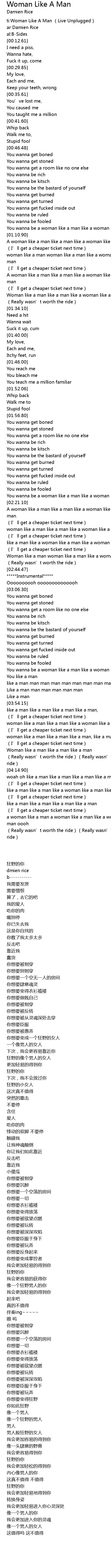| [03:59.94] | woman like a man like a man like a woman like a man like a man |
