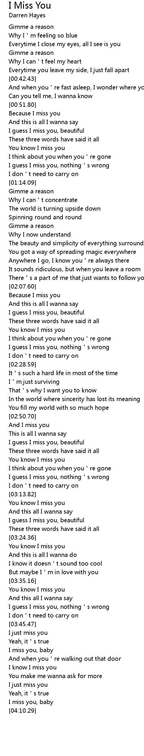 | [04:02.08] | I just miss you |
