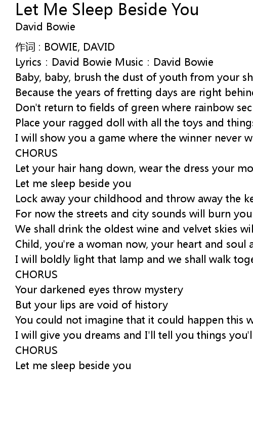 | Let me sleep beside you | |