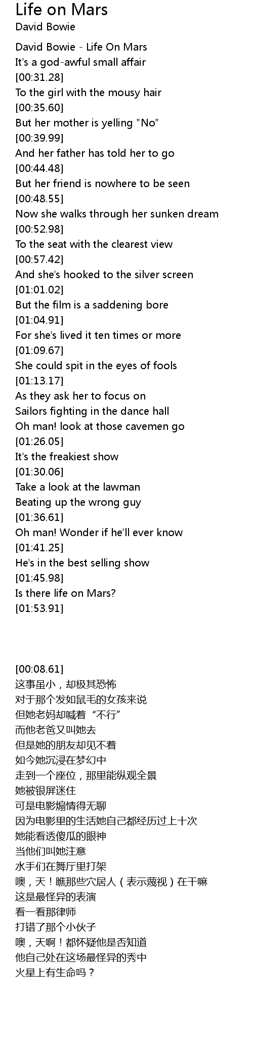 David Bowie - Life On Mars |