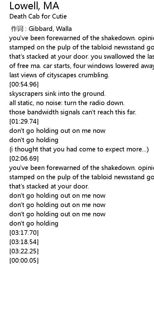 | [00:00.00] | 作词 : Gibbard, Walla |