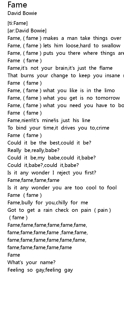 | [03:46.81] | fame,fame,fame,fame,fame |
