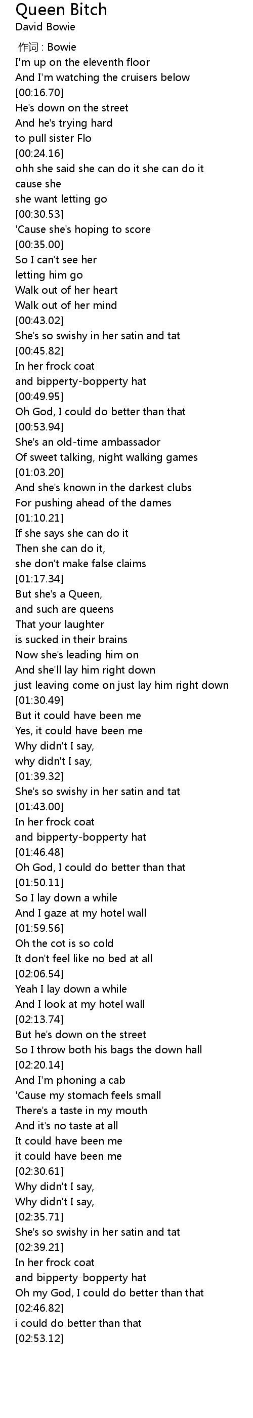 | [00:00.00] | zuo ci : Bowie |