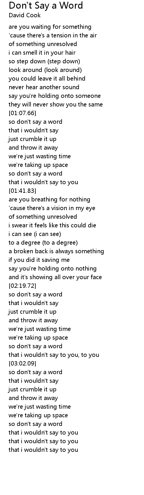 so don't say a word |