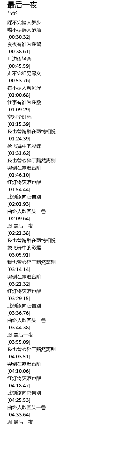 | [04:34.64] | 恩 最后一夜 |