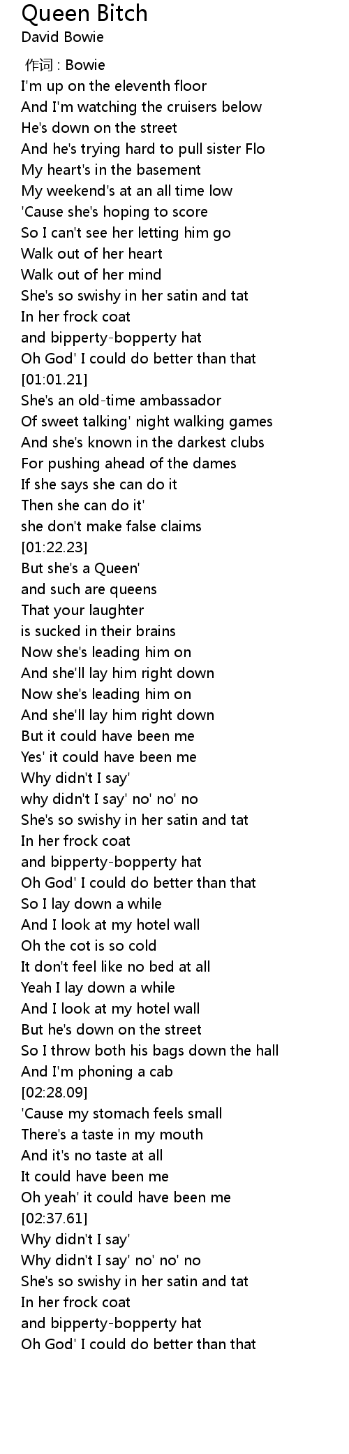 | [02:43.79] | She' s so swishy in her satin and tat |