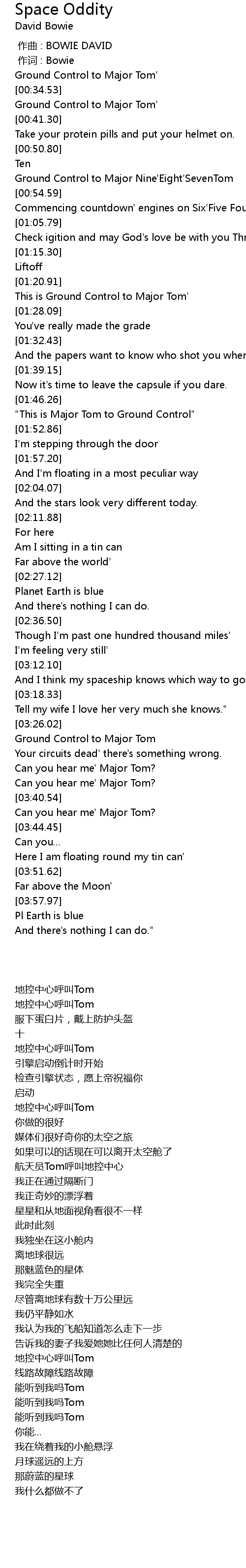 | [01:48.84] | "This is Major Tom to Ground Control" |