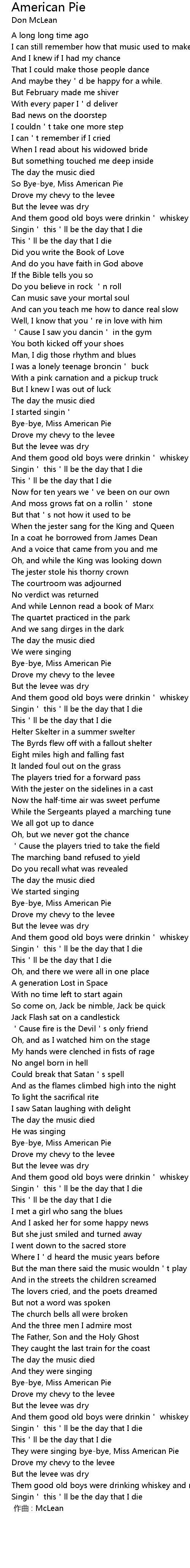 | [01:03] | So Bye-bye, Miss American Pie |