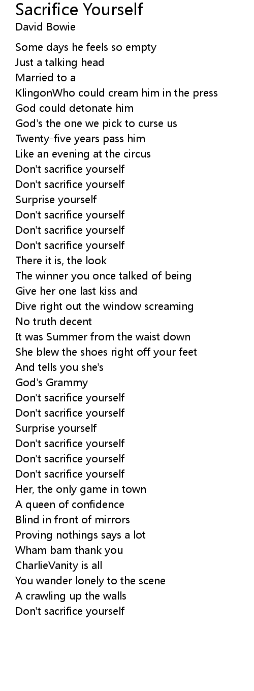 Don't sacrifice yourself |