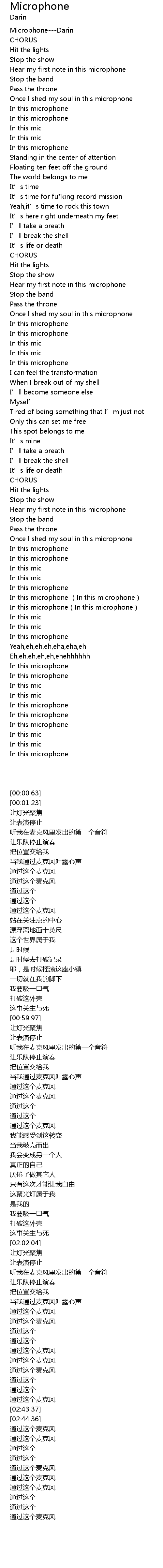 | [00:00.63] | MicrophoneDarin |