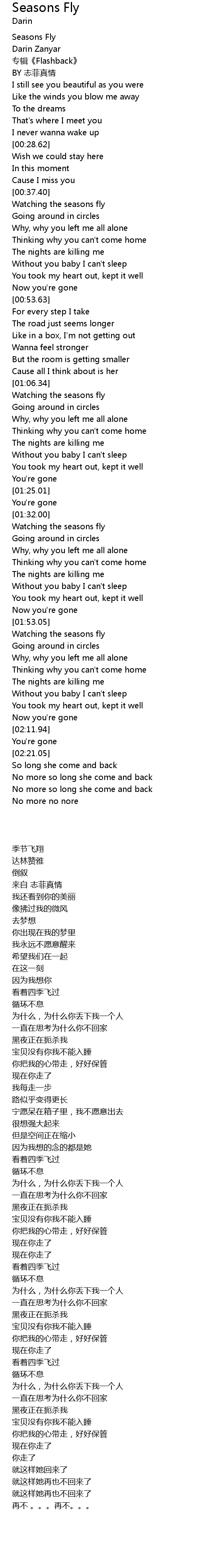 | [00:38.40] | Watching the seasons fly |