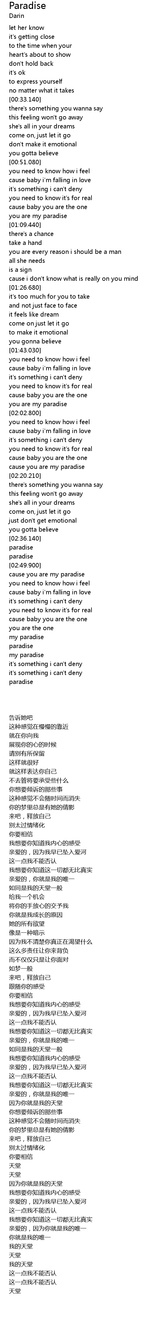 | [02:53.590] | cause you are my paradise |