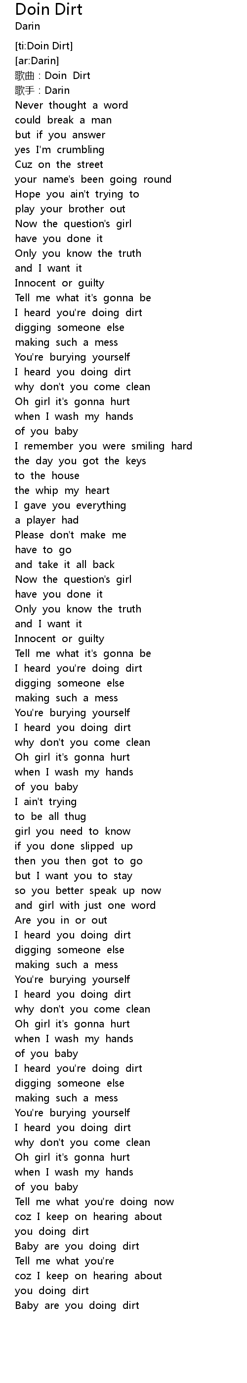 | [00:47.817] | I heard you doing dirt |