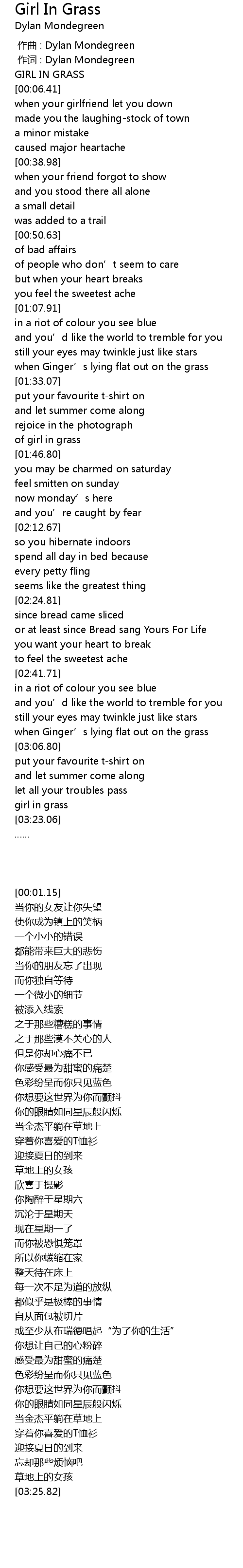 | [00:00.338] | zuo ci : Dylan Mondegreen |
