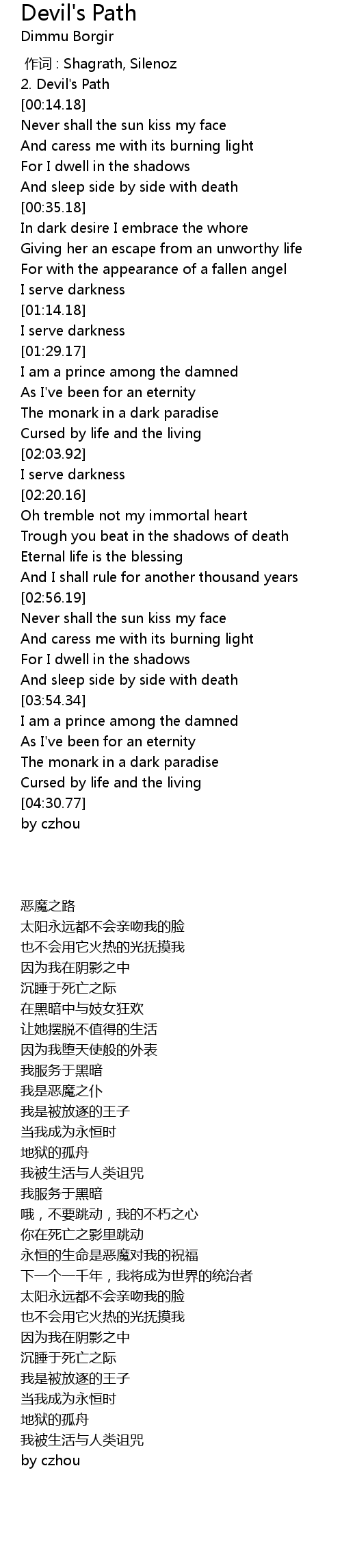 | [00:00.00] | 作词 : Shagrath, Silenoz |