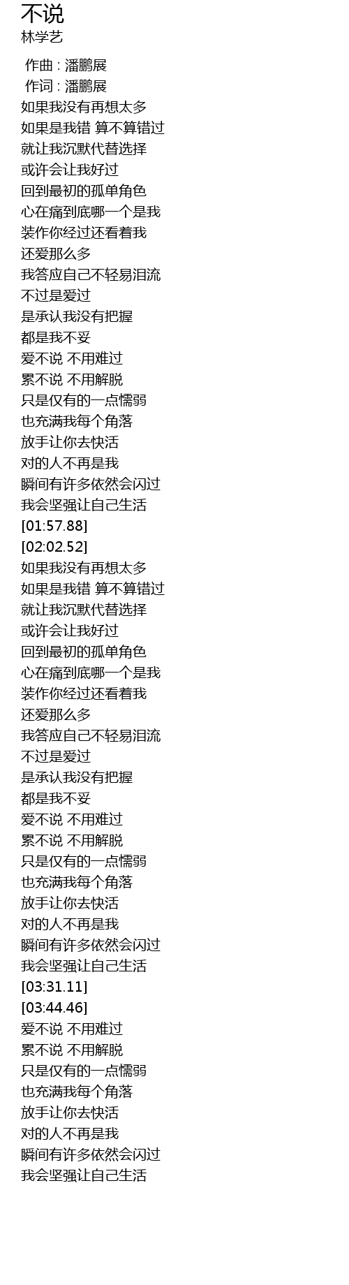 | [02:50.63] | ài bù shuō bù yòng nán guò |