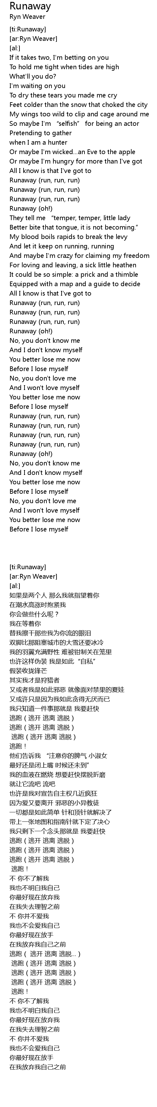 | [02:33.37] | Runaway (run, run, run) |