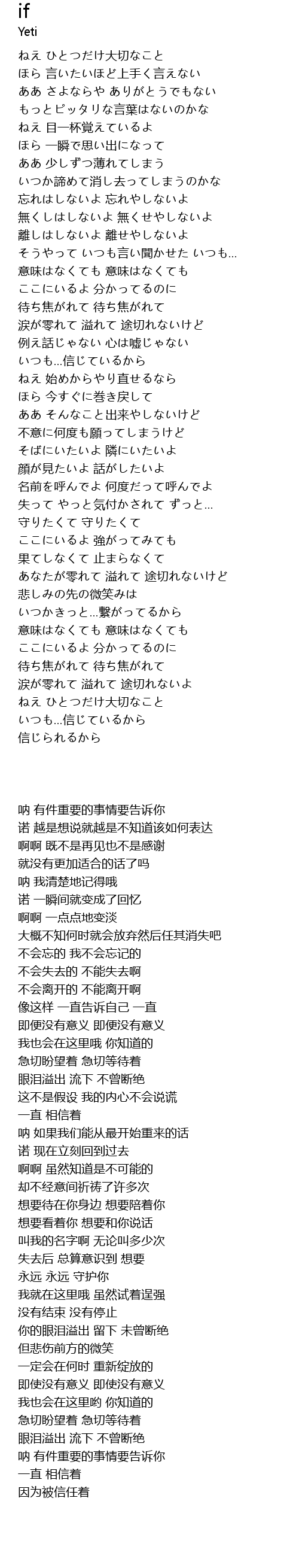 そばにいたいよ 隣にいたいよ |