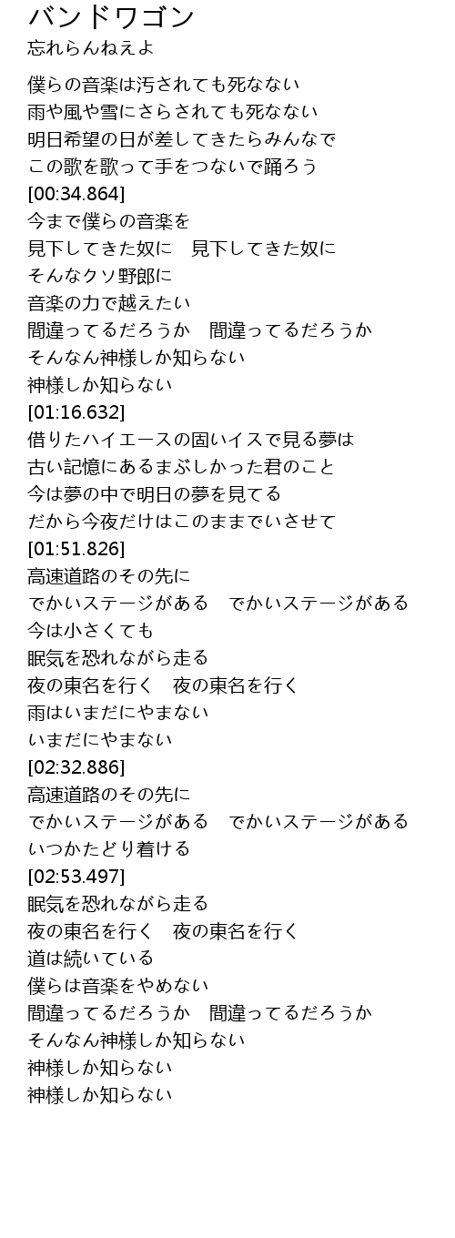 | [01:21.369] | 借りたハイエースの固いイスで見る夢は |