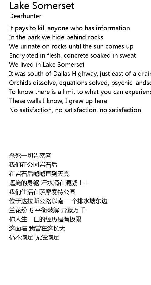 | Song | Lake Somerset |