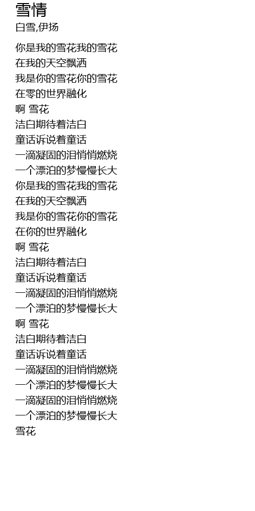 | nǐ shì wǒ de xuě huā wǒ de xuě huā | |