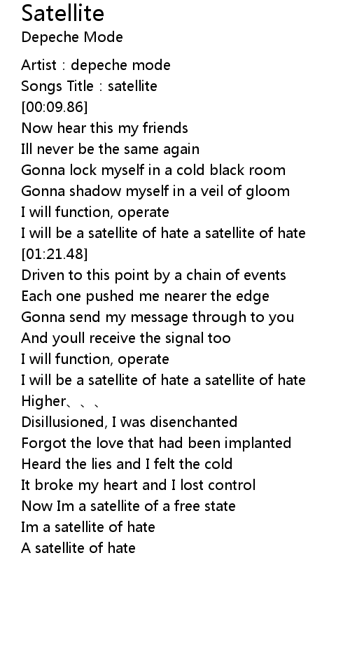 | [01:57.91] | I will be a satellite of hate a satellite of hate |