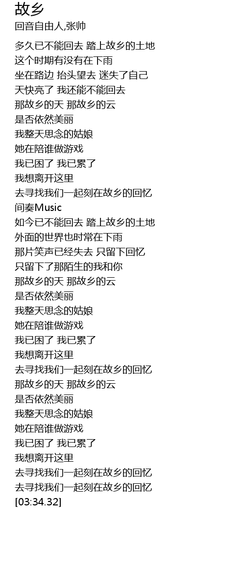 | [00:31.75] | 多久已不能回去 踏上故乡的土地 |