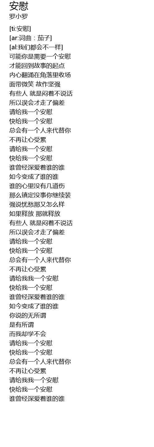 | [01:29.200] | 请给我一个安慰 |
