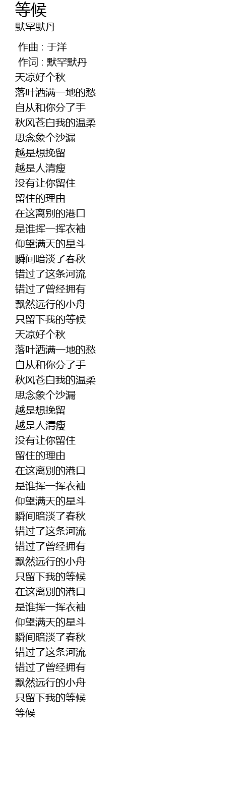 | [01:38.770] | 只留下我的等候 |