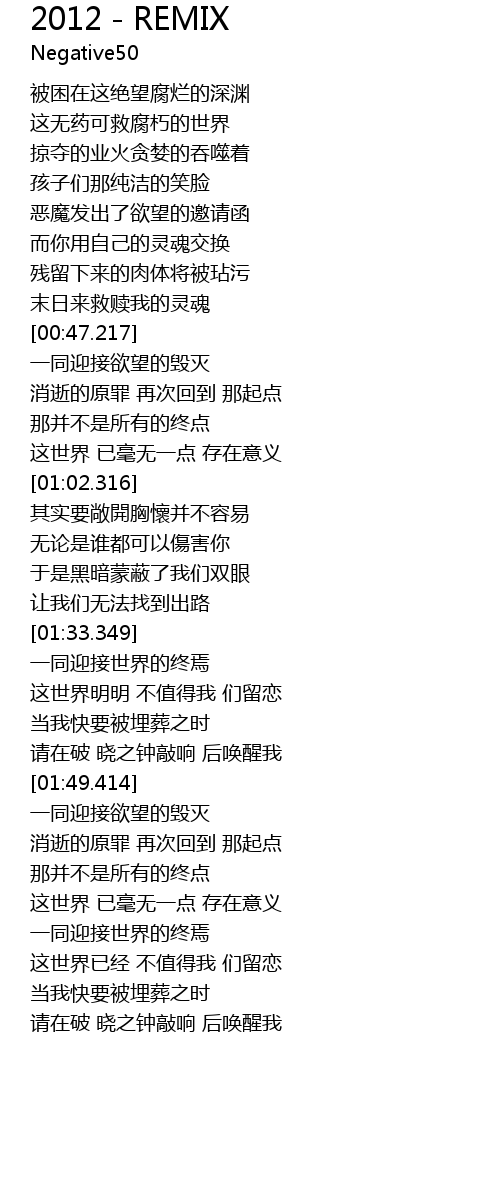 | [01:34.002] | 一同迎接世界的终焉 |