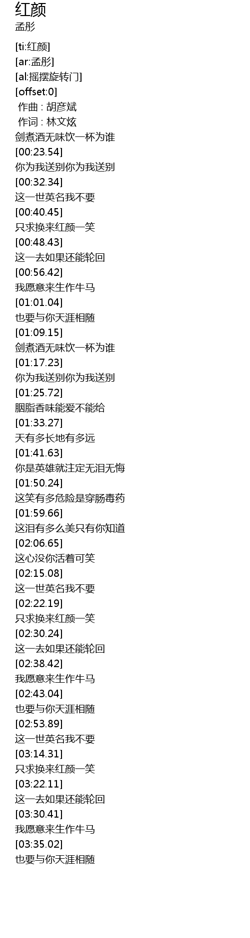 | [00:42.44] | zhǐ qiú huàn lái hóng yán yī xiào |
