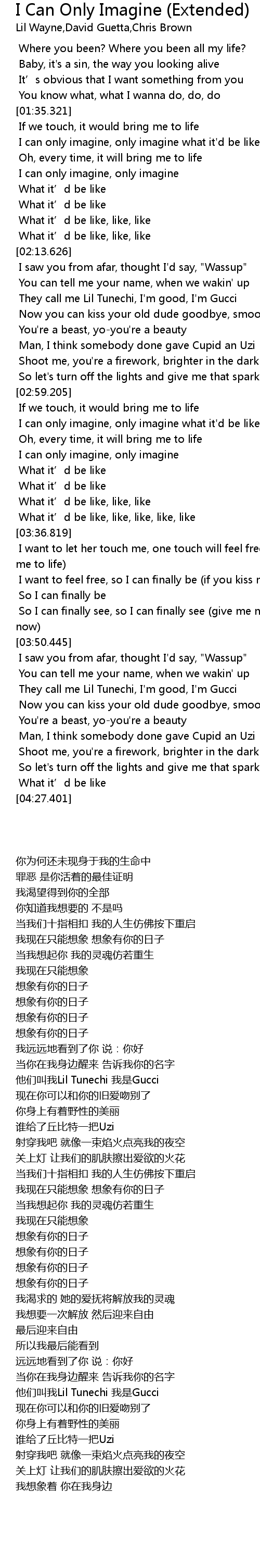 | [01:43.534] | I can only imagine, only imagine what it' d be like |