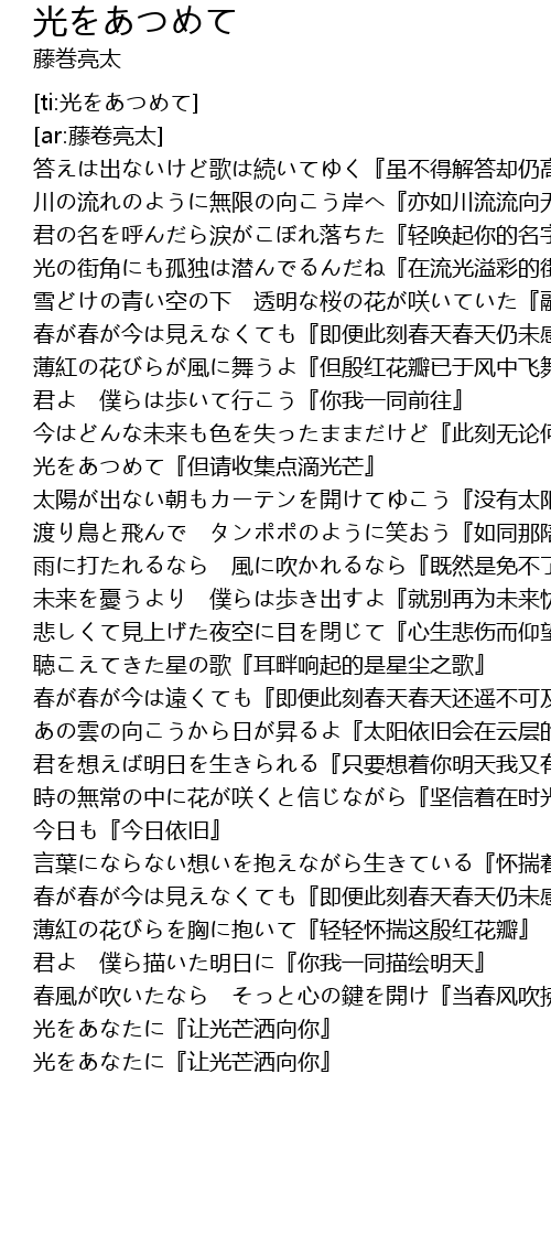 | [01:43.137] | 光をあつめて『但请收集点滴光芒』 |