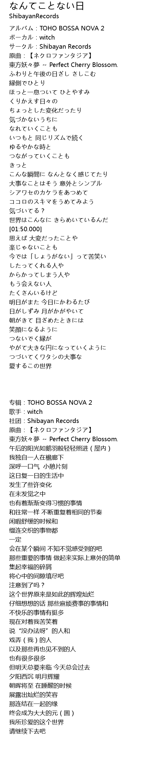 | [00:05.000] | アルバム:TOHO BOSSA NOVA 2 |