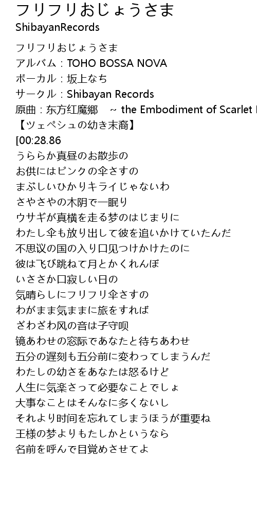 | [00:01.46] | アルバム:TOHO BOSSA NOVA |