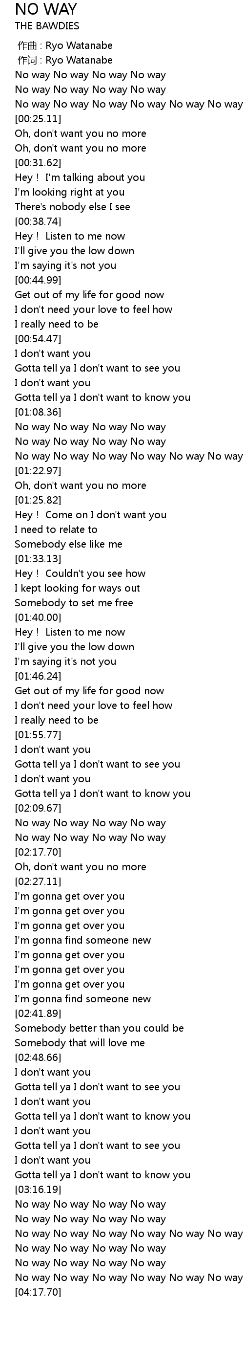 | [01:08.36] | No way No way No way No way |