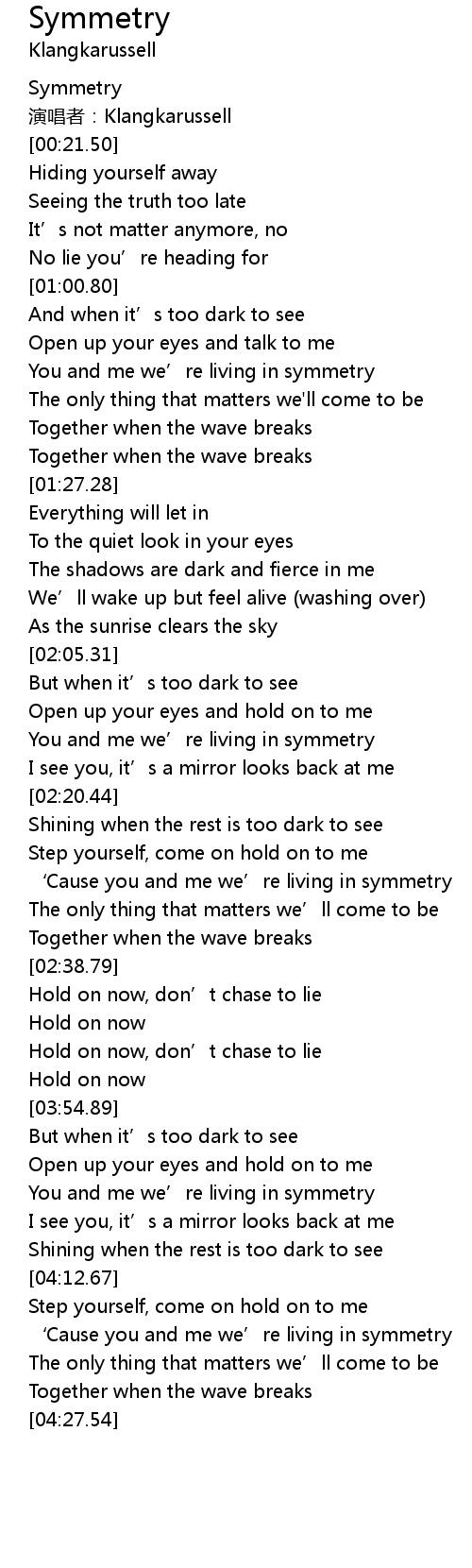 | [04:16.93] | ‘Cause you and me we’re living in symmetry |