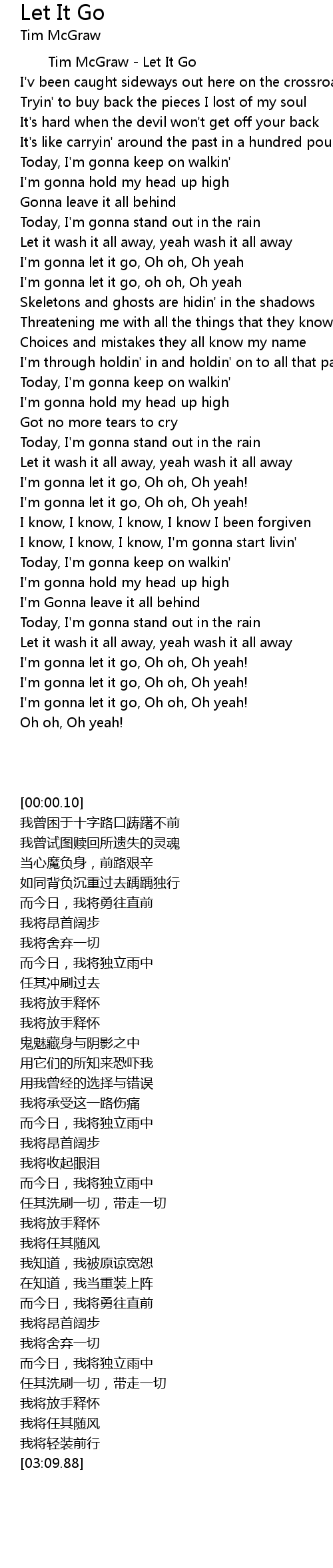 Tim McGraw - Let It Go |