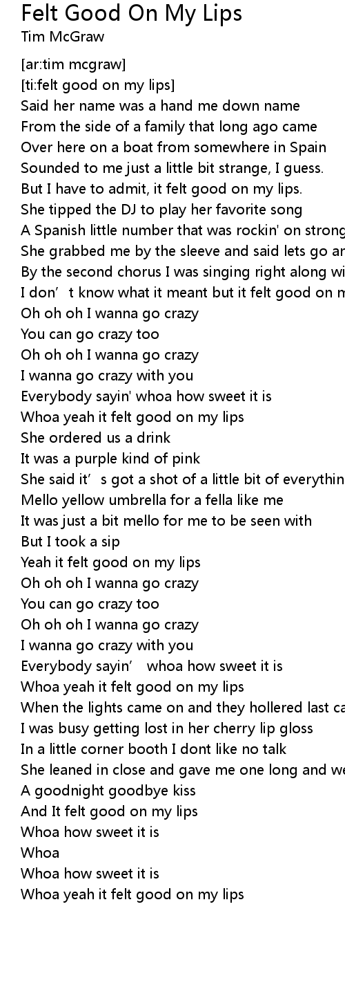 | [01:24.69] | Whoa yeah it felt good on my lips |