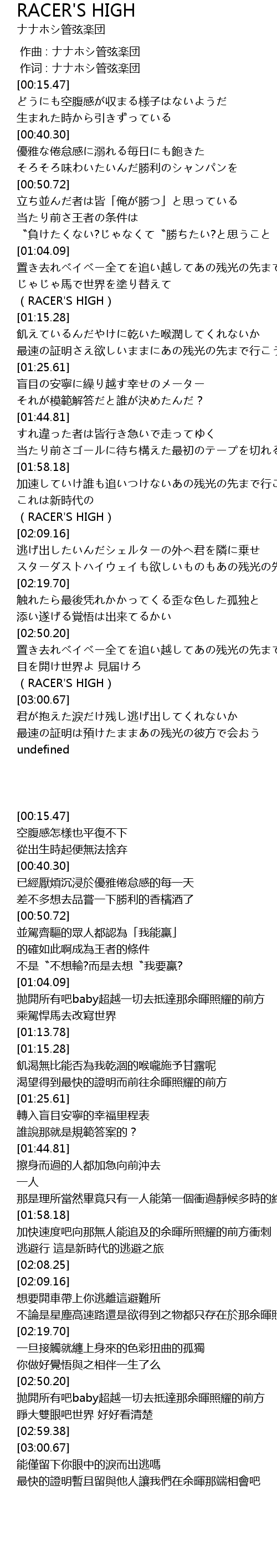 | [02:59.38] | RACER' S HIGH |