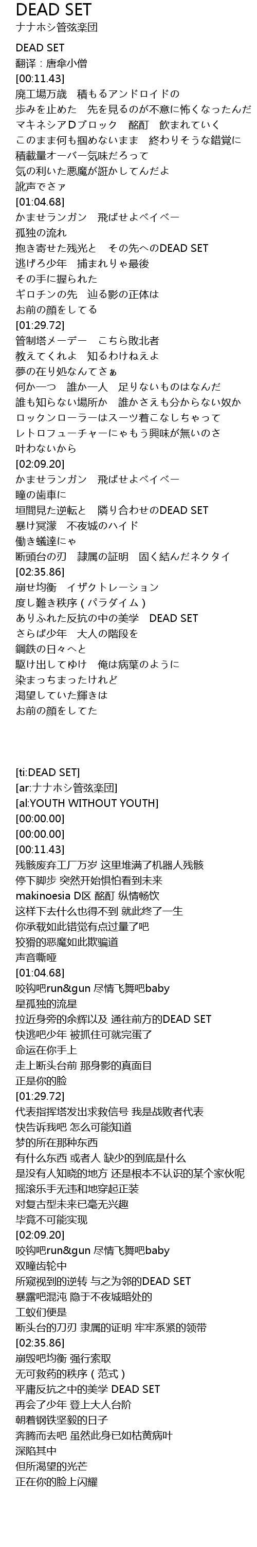 | [01:10.70] | bao ji can guang xian DEAD SET |