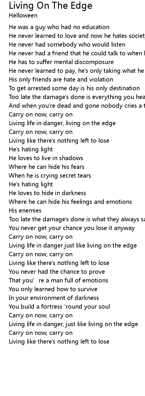 | Living life in danger just like living on the edge | |
