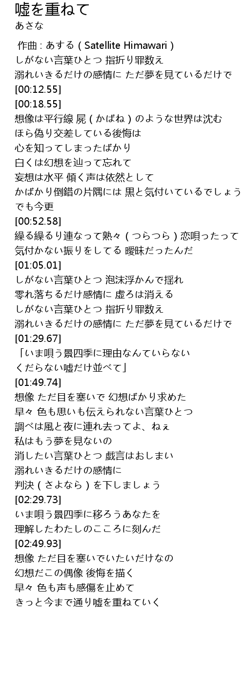 | Song | 嘘を重ねて |