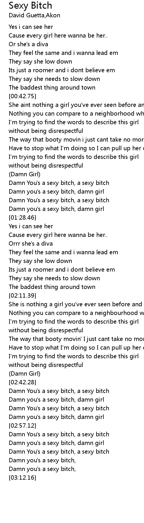| [02:42.69] | Damn You's a sexy bitch, a sexy bitch |