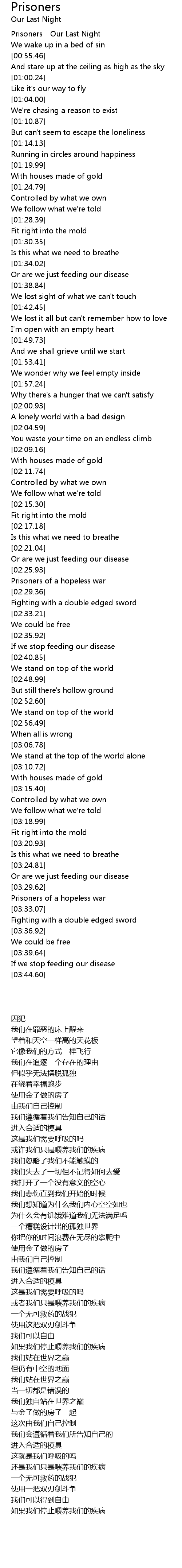 Prisoners - Our Last Night |