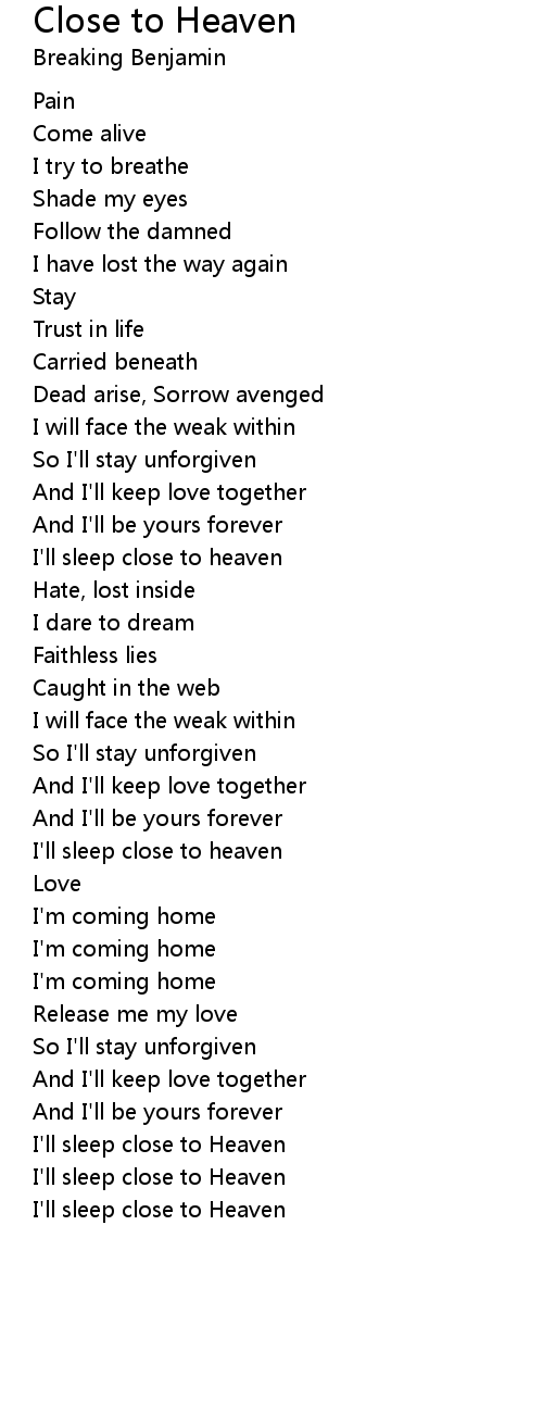 I'll sleep close to heaven |