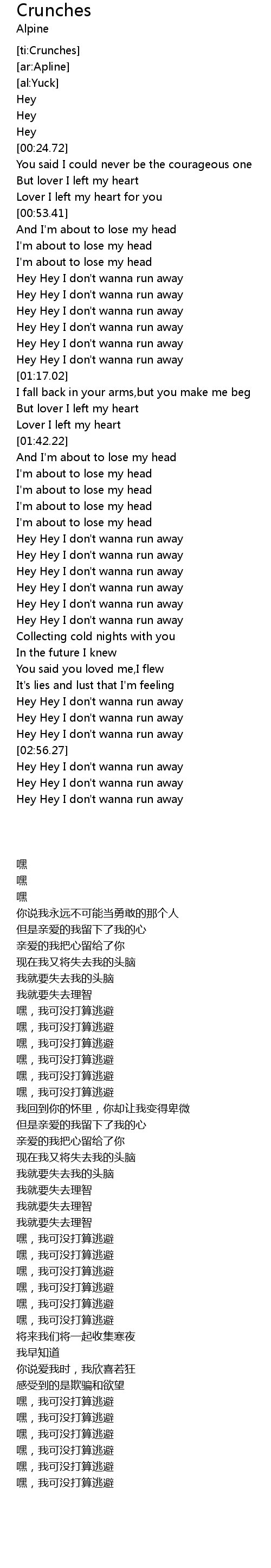 | [02:53.72] | Hey Hey I don't wanna run away |