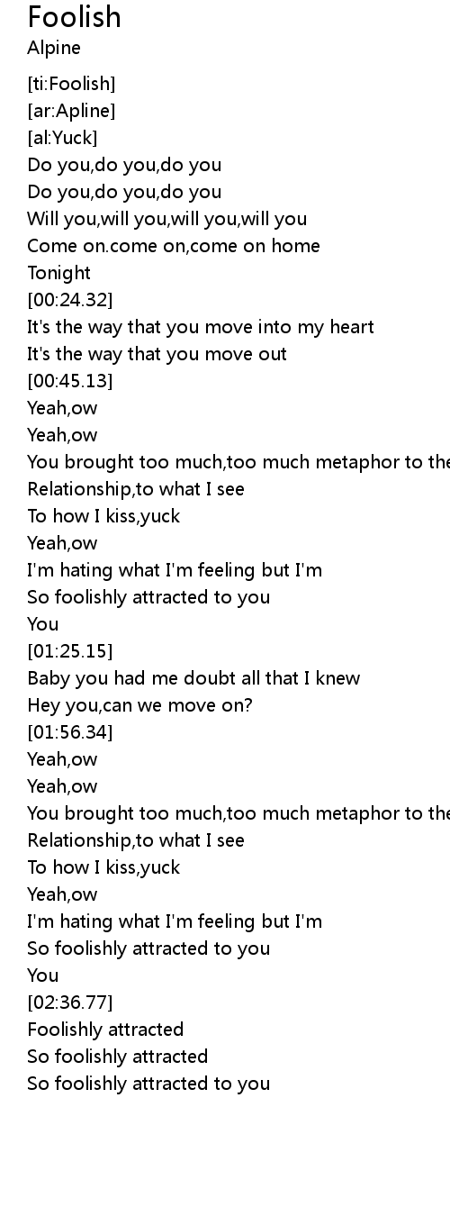 | [02:02.78] | You brought too much,too much metaphor to the |